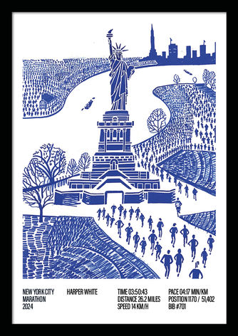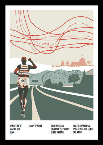 Our process is simple and user-friendly: choose from various artistic styles, enter your data, and let our AI do the rest. The result is a one-of-a-kind piece that captures the essence of your achievement, perfect for hanging in your home, office, or gifting to a fellow runner.